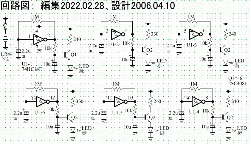 今思うと、Trのコレクター抵抗とエミッターLEDの接続を逆に…つまり、エミッターに抵抗器、コレクターにLEDを接続したほうが良かったかもしれません。