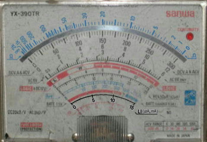 その時の電源はテスターの内蔵電池により、3Vまでしか出ないのと、さらに9V電池を内蔵していて12Vが出せるテスターがあります。抵抗測定レンジの最大レンジでそれは発揮されます。