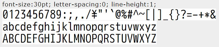欧文フォント。等幅。LCDのフォントを模擬した物。半角カナ文字を含む。